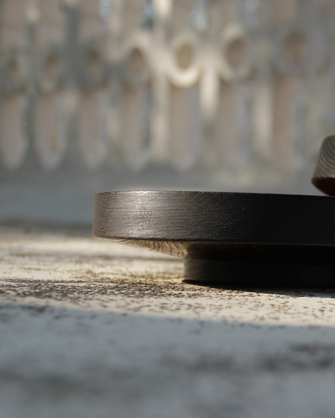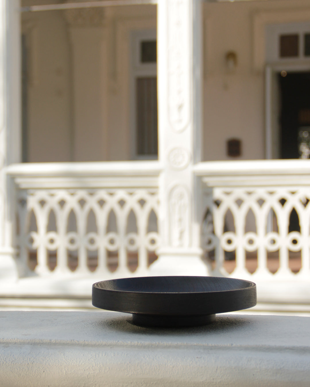 A small footed bowl with straight walls in Vengai wood speaks of simplicity and elegance. The gently curved lip holds the food. Carefully crafted, it shows highly noticeable faces.