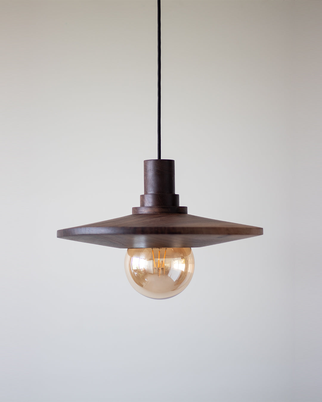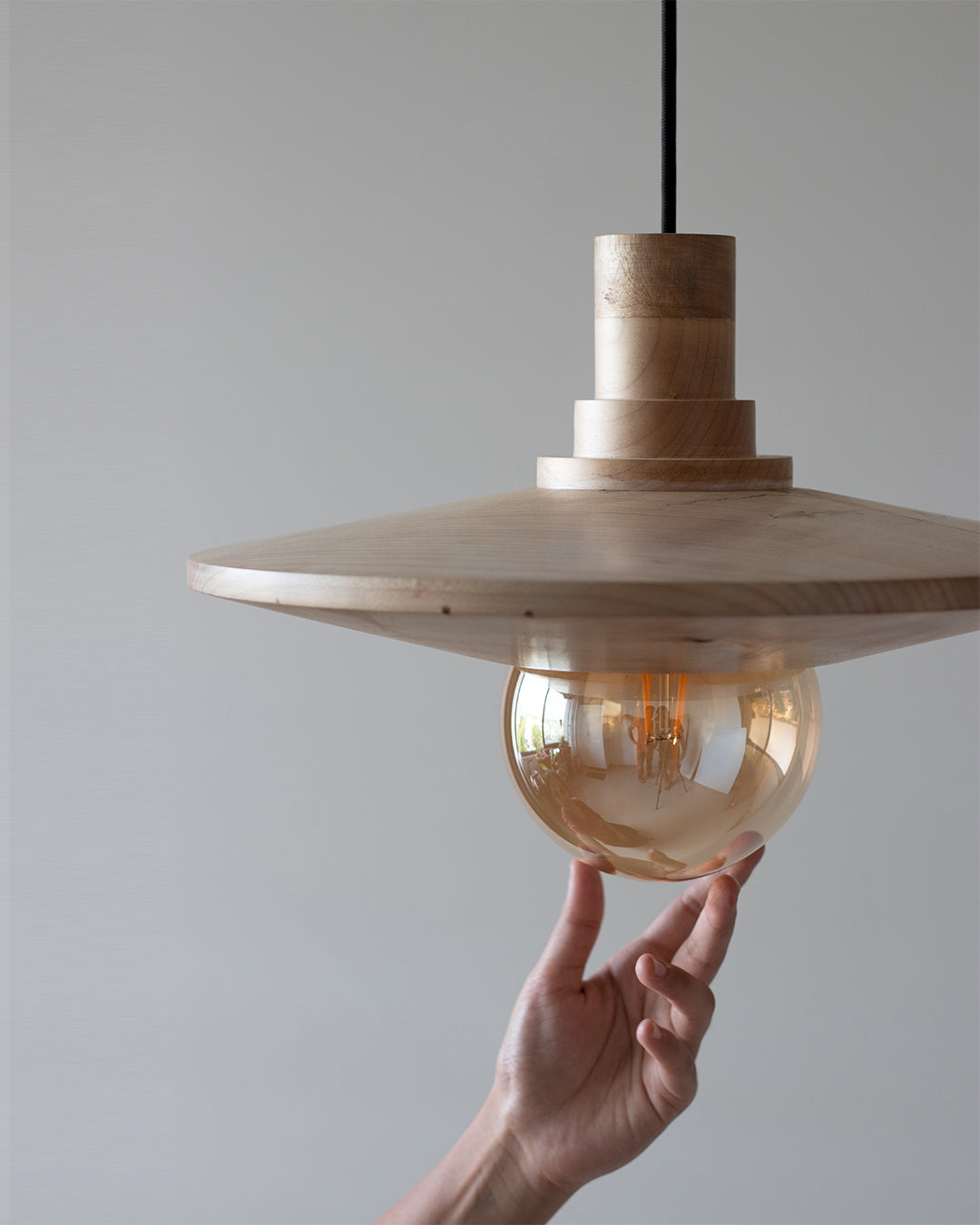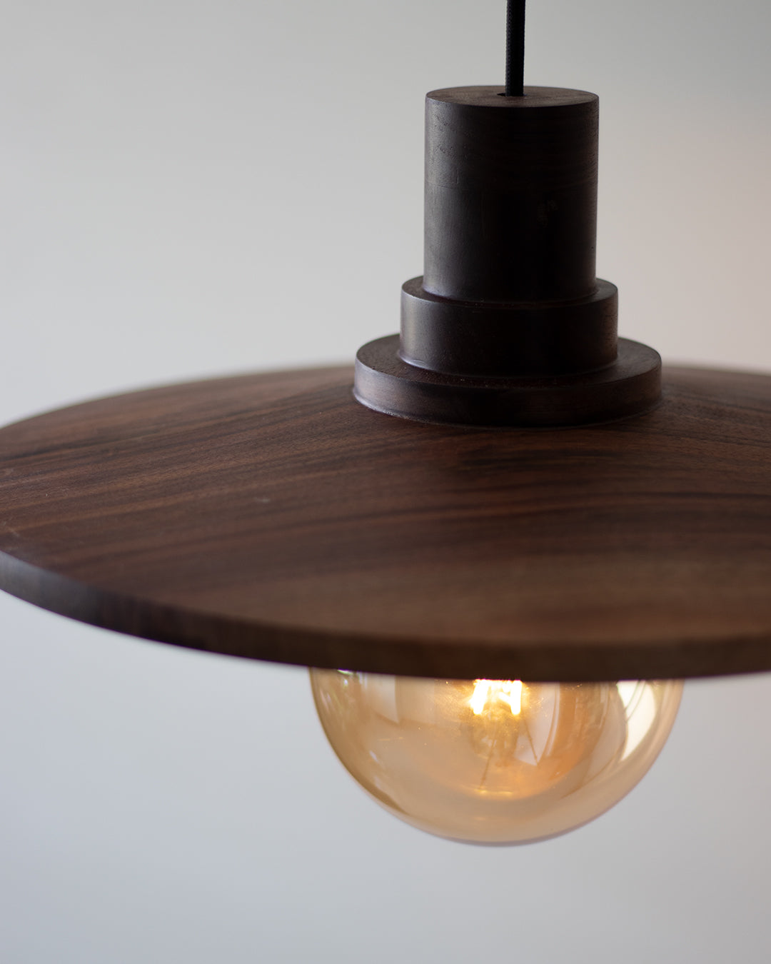 Sleek and sculptural, these walnut & Sycamore lamps define its material with a form that feels almost weightless. Like a quiet, hovering UFO, it carries a futuristic elegance, grounded in craft, yet reaching forward in design. Its clean silhouette glows with quiet confidence, making it a subtle statement in any setting.
