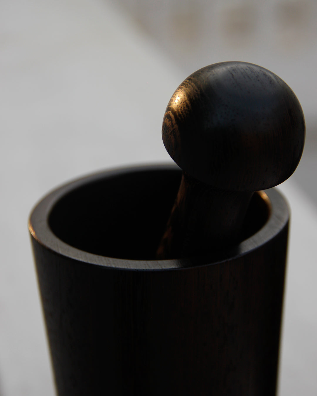A traditional kitchen accessory, the Mortar and Pestle, in the warm feel of Vengai wood.The soothing aroma of freshly ground spices wafting out of grandma’s kitchen, a warming memory that bring a smile to every face. It’s completely functional. There is a history to the kind of objects that we create. We like to fold stories into our work, the history of the object, or even the context that all of these things belong to.