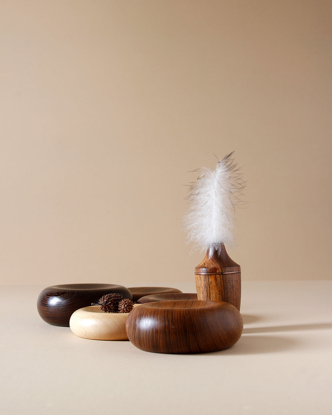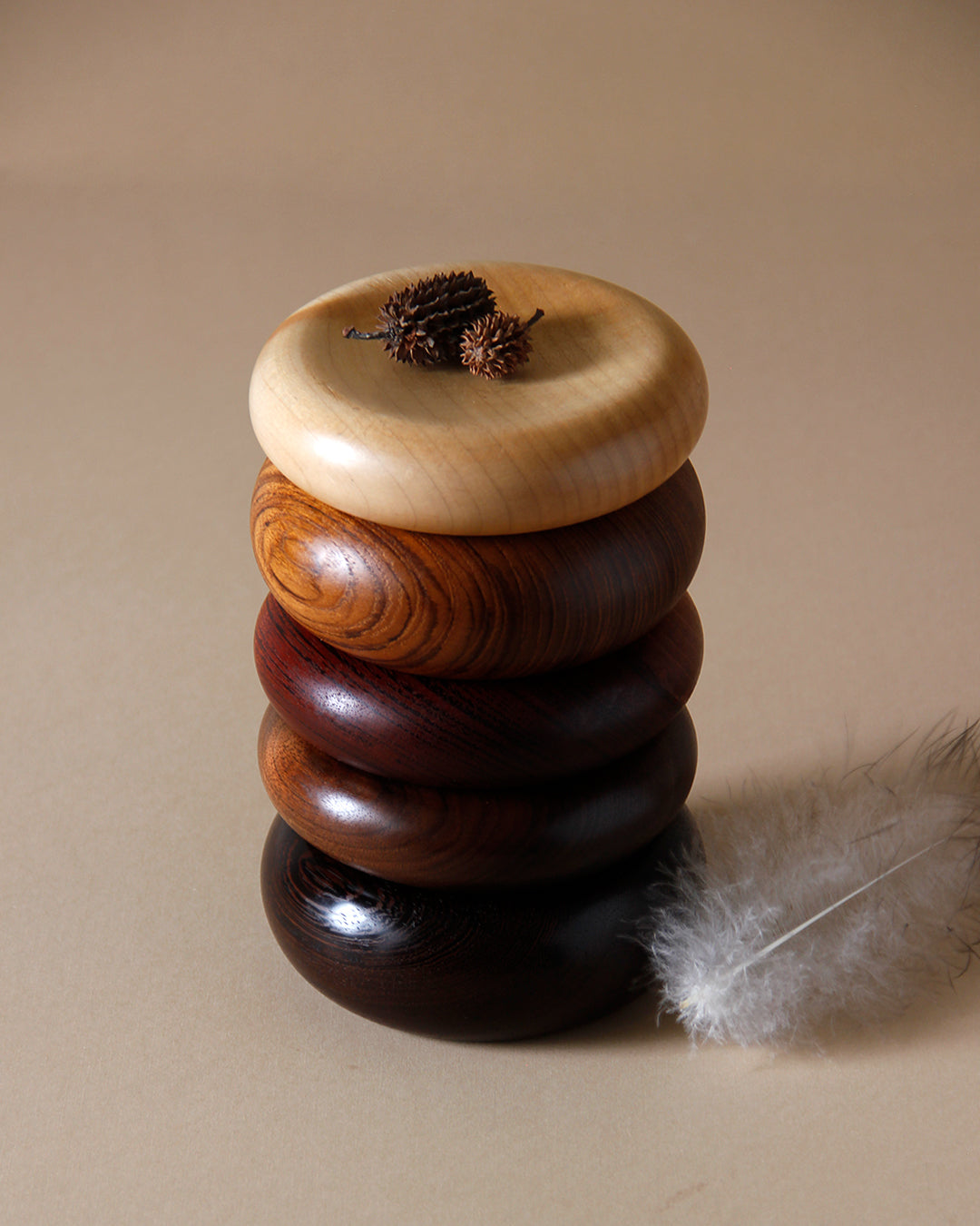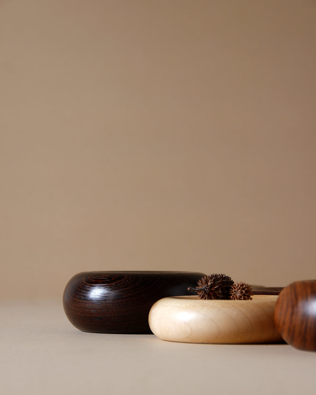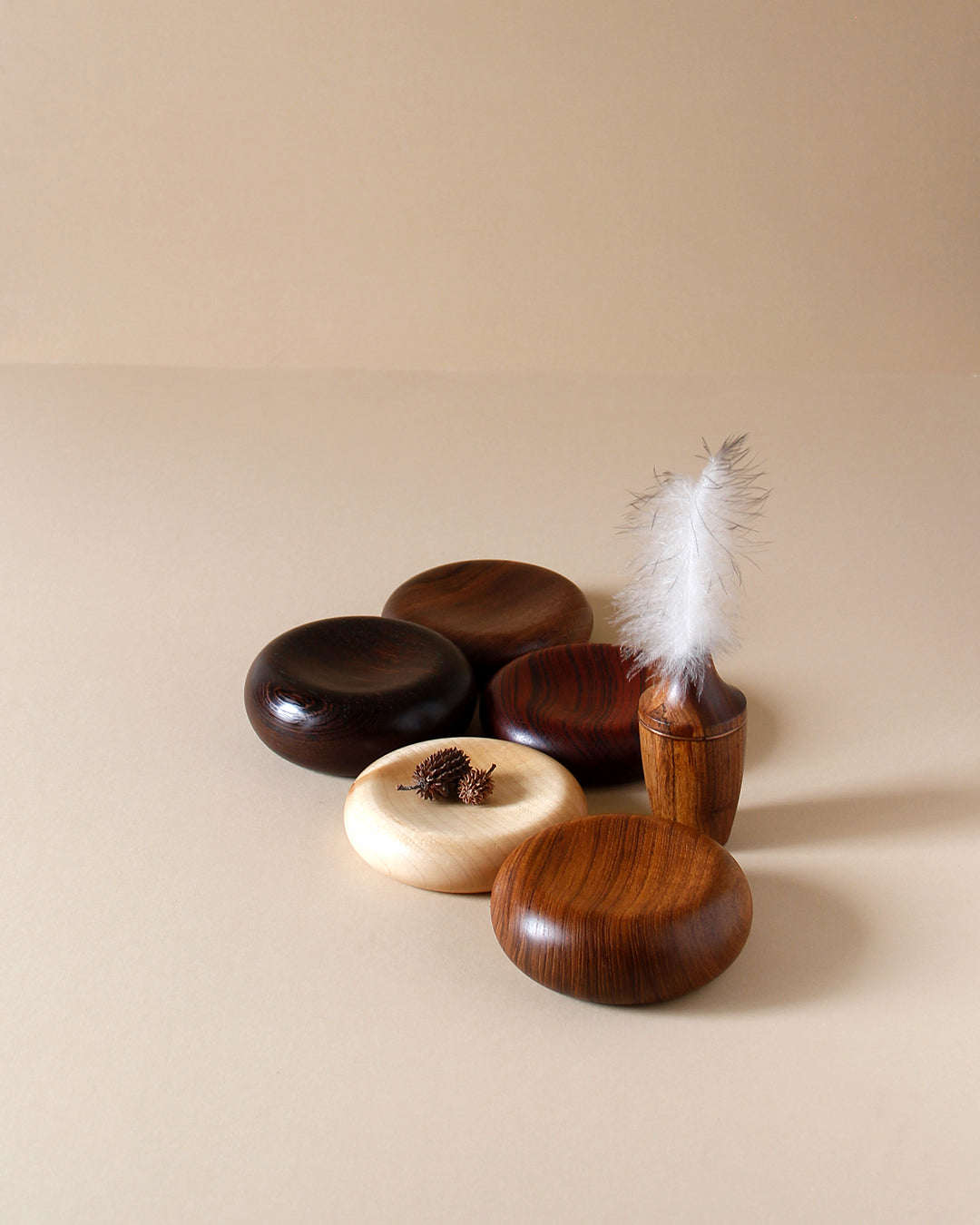 Our dunes 03 in different woods are curvy, which provides a wonderful canvas to show off the beautiful variations of grain pattern seen in various areas where we make them. They are sculptures that can be used to display a small, priceless object, like a piece of jewellery. We are usually inspired by European craftsmanship that guides us to explore new forms. They just look so soft and luscious, we are resisting the urge to bite into these mini pillows.