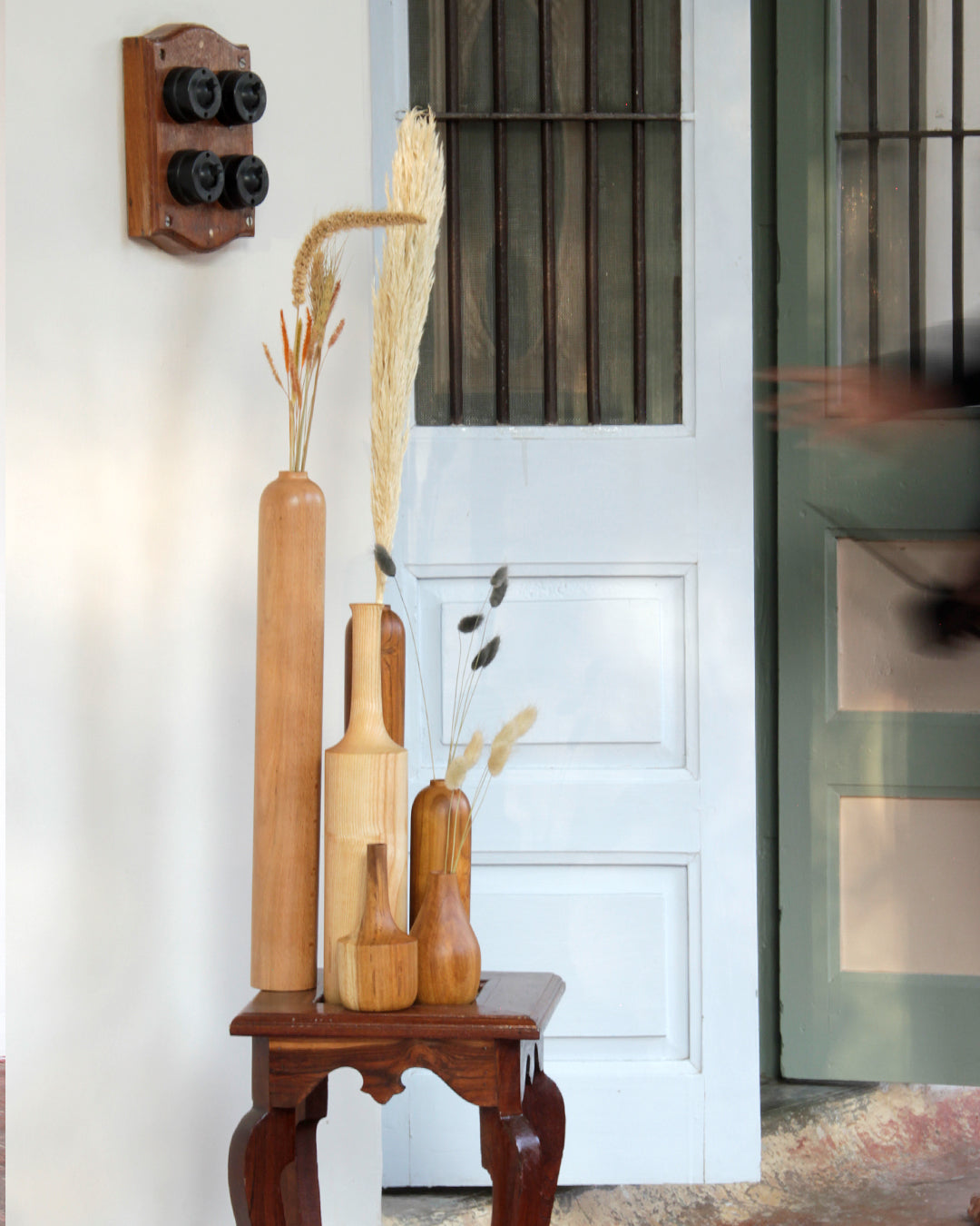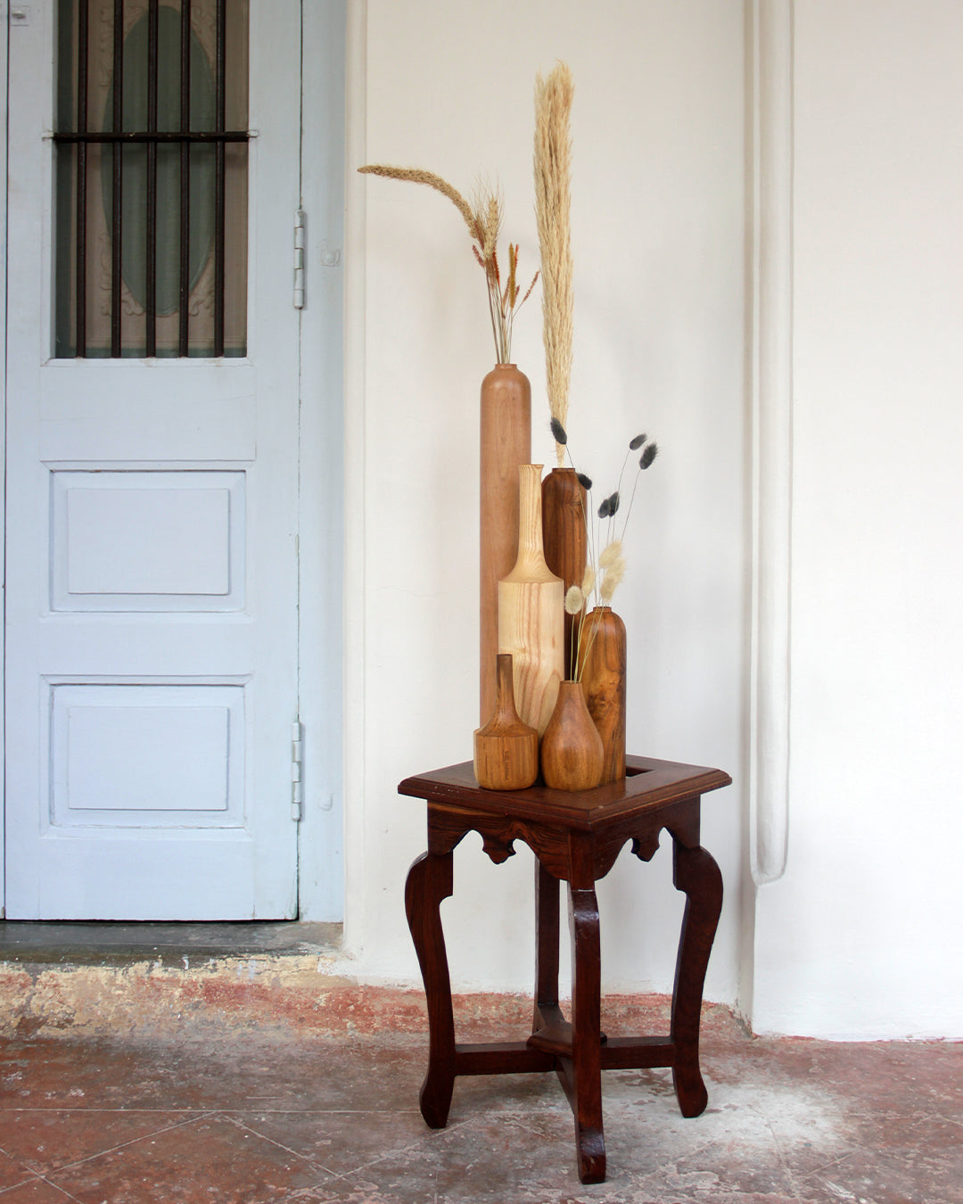 These eye-catching vases in Teak, Steam Beech and White Ash come in varied forms that are perfect on the coffee table or a console all year around, displayed individually or in groups of varying heights and shapes. Each piece is unique and shows the qualities & gradations in the tones of the wood, some have small knots or striations across the surface in addition to their overall appearance. Perfect for collecting the dried flowers and adding a new species each time.