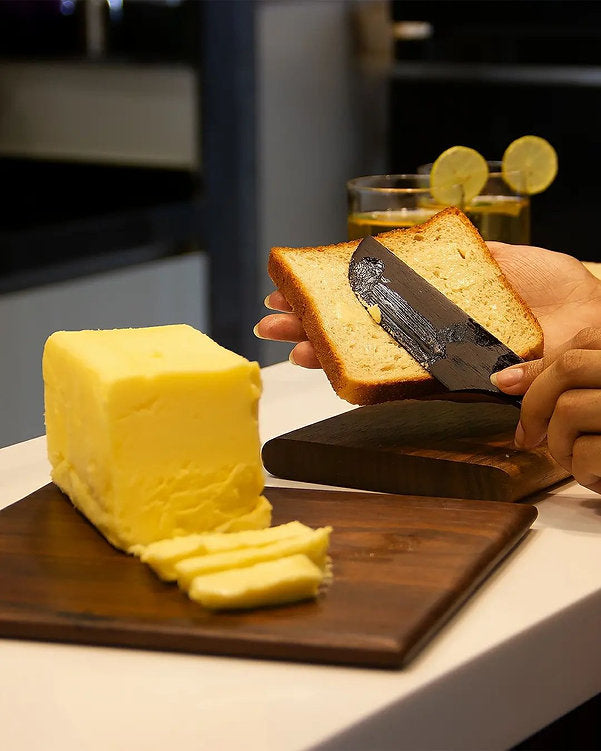 In sleek and dynamic forms. The Rosewood knife is a perfect example of style and utility. Light and well handled, it’s perfect for spreads and dips.Made with patience and precision, an ergonomic handle for slip resistance and a comfortable grip. A seamless design that allows for unparalleled cleanliness and easy care. Finished by hand, each butter knife is unique. This knife is our signature style.